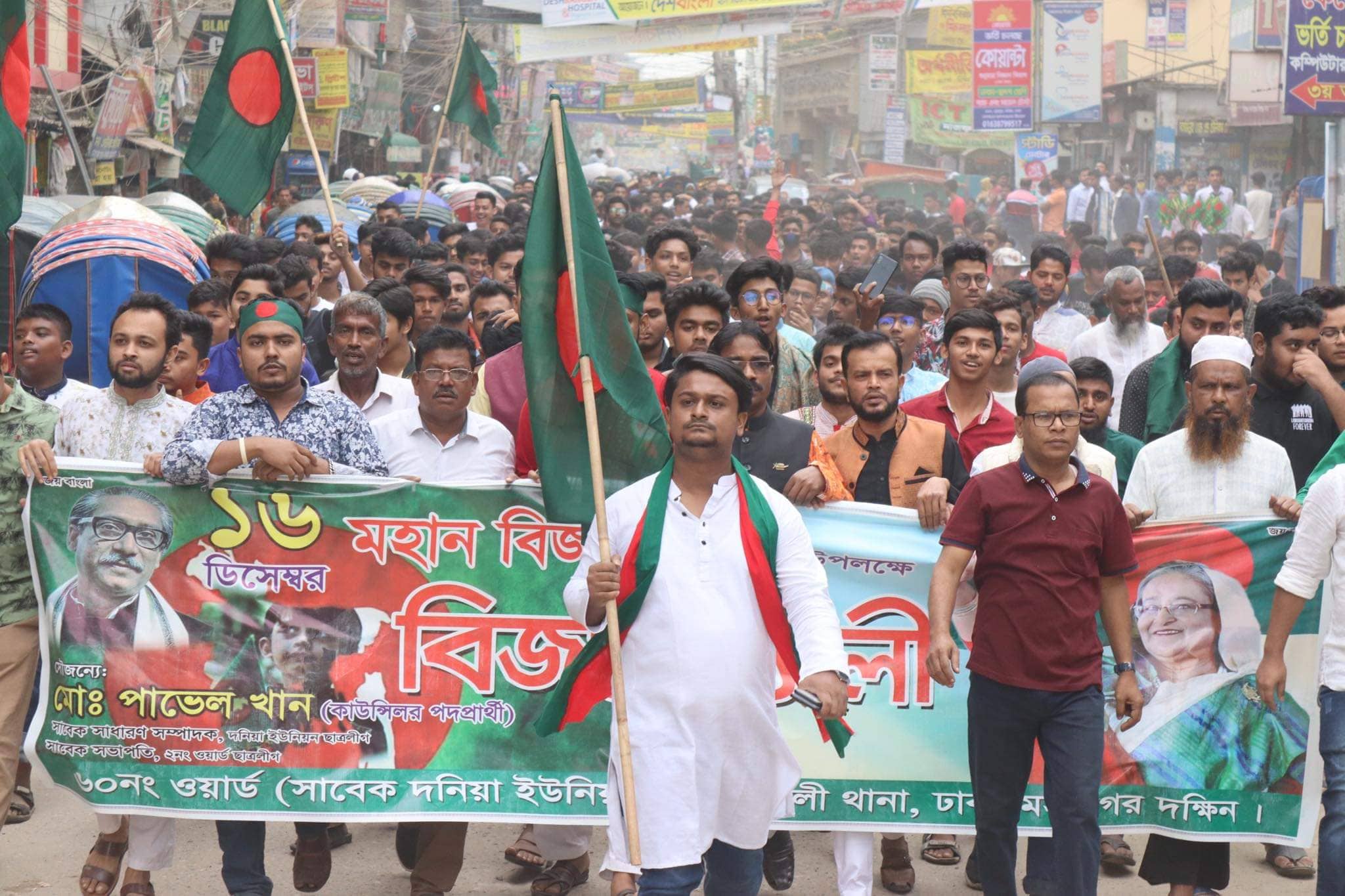 আজ রাজধানীর শনিআখরা এলাকায় ১৬’ই ডিসেম্বর উপলক্ষে এক বিশাল বিজয় মিছিল বের করেন নবীন প্রবীনদের জনপ্রিয় মানুষ সম্ভাব্য কাউন্সিলর পদপ্রার্থী, বারবার সফল সাধারণ সম্পাদক দরিয়া ইউনিয়ন ছাত্রলীগের নেতা পাভেল খান। পরে মিছিলটি বিভিন্ন পথ ঘুরে বিজয়োৎসব যানান দিয়ে আরেকবার সরন করিয়ে দেয় যে হে সূর্য সন্তানেরা আমরা তোমাদের ভুলিনাই।