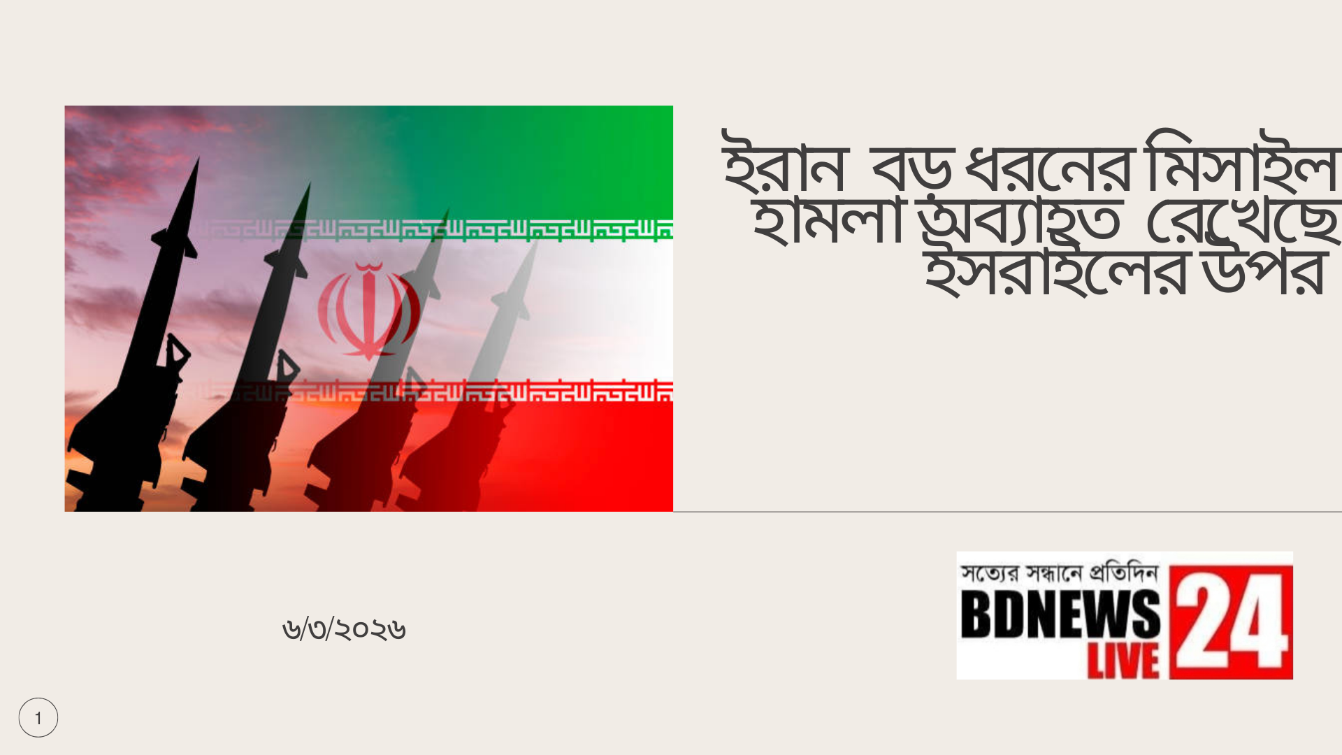 ইরান বড় ধরনের মিসাইল ও ড্রোন হামলা অব্যাহত রেখেছে ইসরায়েলের উপর। - BD News Live 24