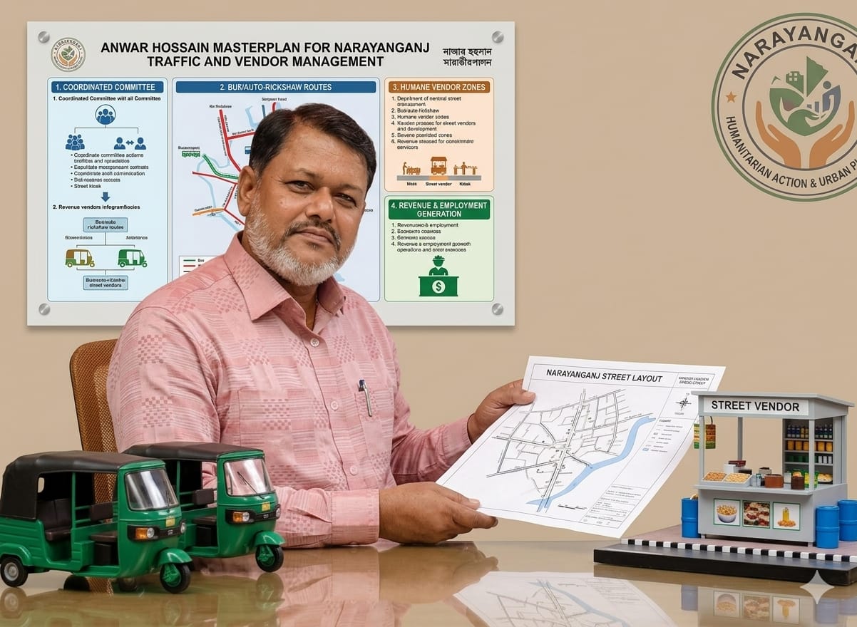 উচ্ছেদ নয়,মানবিক পুনর্বাসন :নারায়ণগঞ্জের যানজট ও হকার সমস্যার বিকল্প রোডম্যাপ।